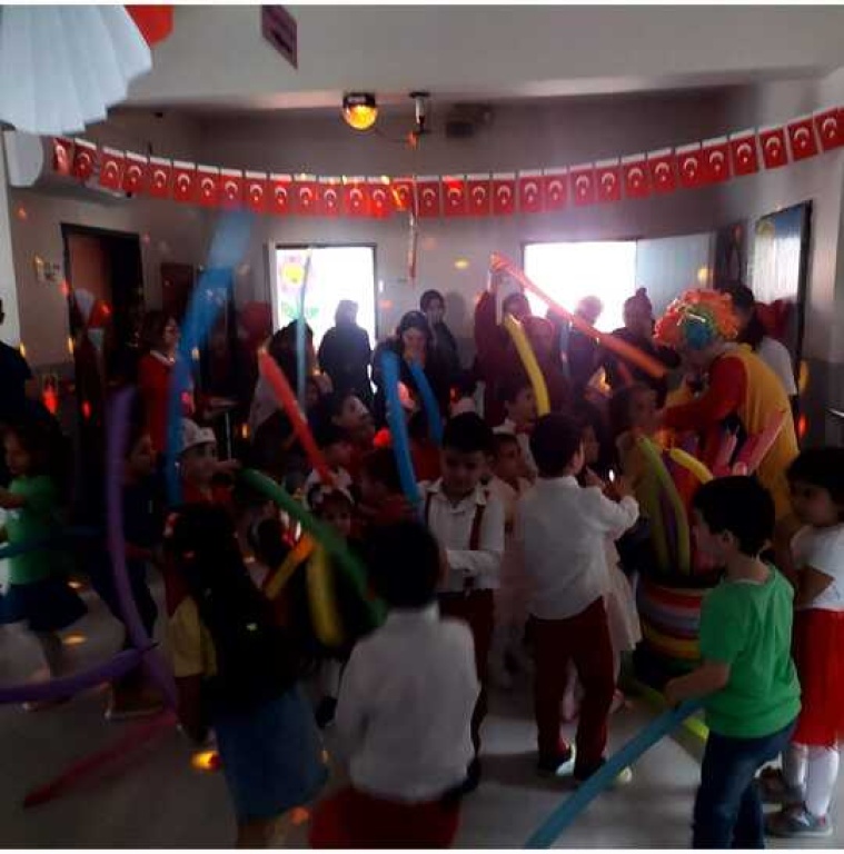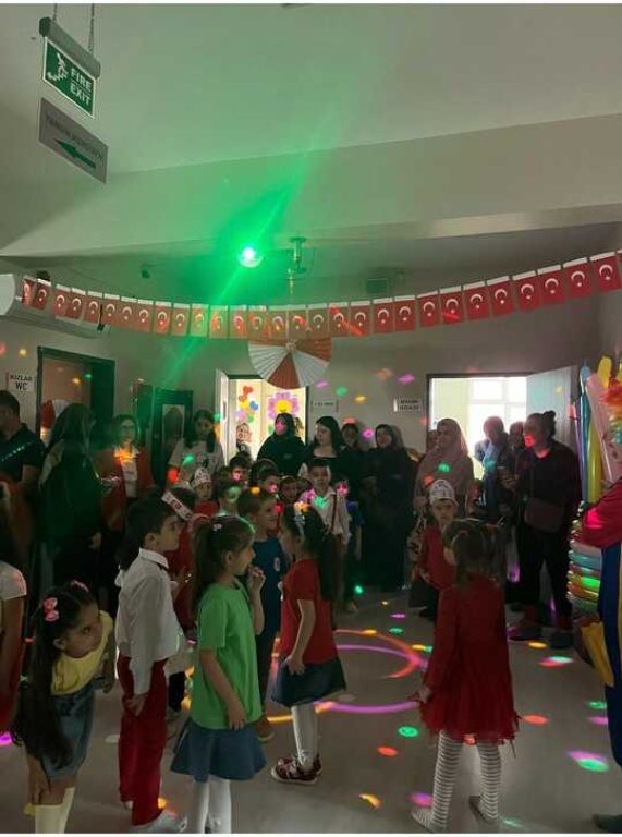 23 Nisan Ulusal Egemenlik ve Çocuk Bayramı kutlamamızı hava şartları nedeni ile okulumuz içerisinde 2 farklı grup oluşturarak gerçekleştirdik.Bayram programının ardından ,palyaço ile müzikli eğlence,alçı bayrak boyama etkinliği ve ikramlar ile kutlamamızı tamamladık.Programda emeği geçen okulumuz personeli ve coşkumuza ortak olarak katılım sağlayan velilerimize teşekkür ederiz.23 nisan Ulusal egemenlik ve Çocuk bayramımız kutlu olsun.